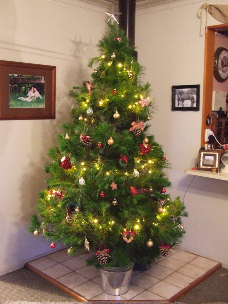 It got progressively more decorated. The red and white baubles are covered in red and white electrical tape.
