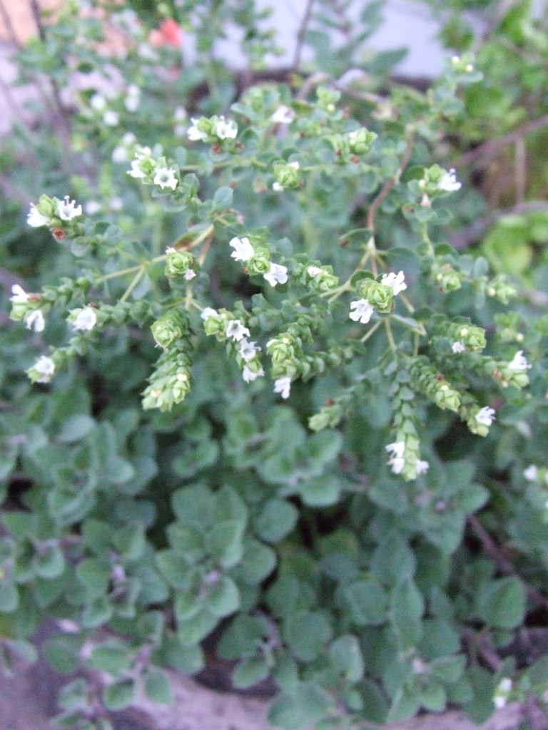 Perennial. Greek oregano is said to be the best culinary oregano due its strong flavour. It is has white flowers rather than the pale purple/pink of other oregano species. It is indispensable for numerous types of cooking and it is one of the few herbs that tastes good dried as well as fresh. We mostly use it fresh for things such as pizza, pasta, and roast veges and meat.