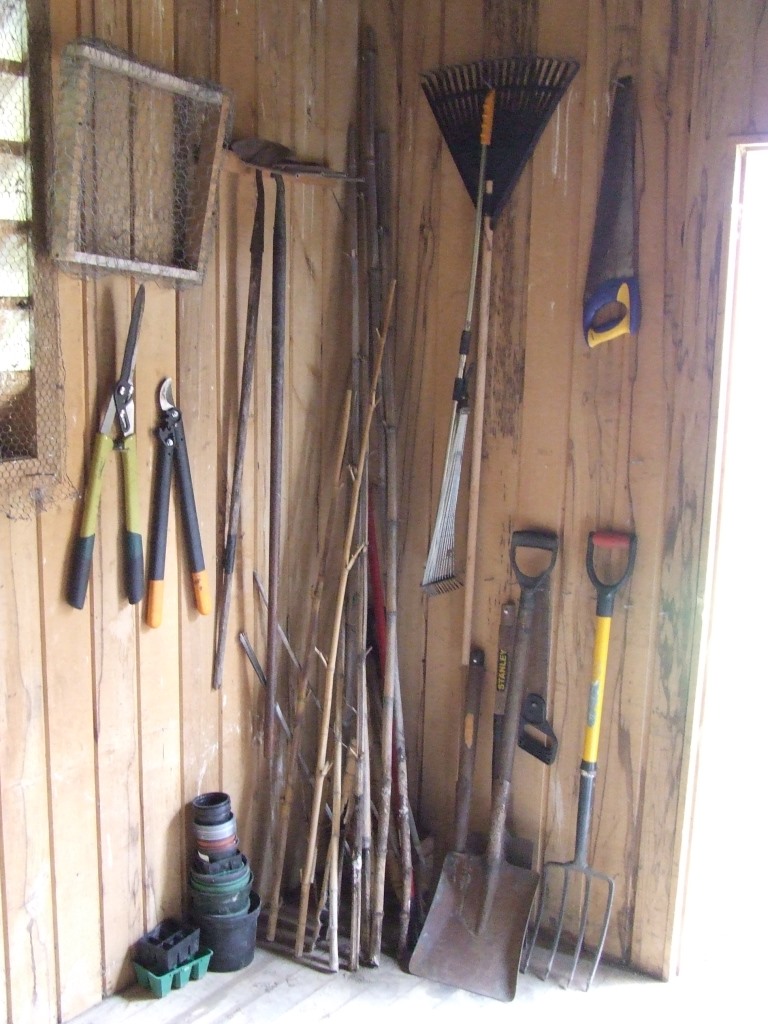 Something else I did, which was a little more strenuous, was sort out my potting shed. It is called the potting shed, although it is still waiting to receive my potting bench, which is still sitting in the carport waiting for some strong men to move it… One day… A lot of my gardening stuff was still in boxes so I unpacked things and sorted most of them out on the shelves. The Husband is going to build me another shelf in the compartment on the left, which was storing firewood and odd bits and pieces when we bought the house. There were already some nails on the walls, which some of the tools are hanging on, and I shall tidy things up more once I get my potting bench positioned in there. I just love all the wood the shed is made of.