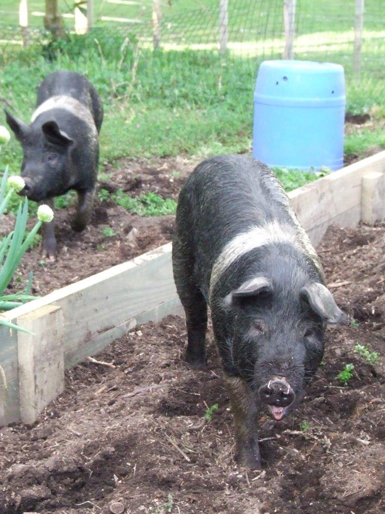 We did have a bit of an incident yesterday. I was looking outside at the chickens in the vege garden pen, where The Husband had put them earlier, when I suddenly realised there was a large intruder in there and another intruder in the orchard. The intruders were pigs and they were trotting around like maniacs! We rushed over and I ushered the frightened chickens back to their run while The Husband corralled both pigs in the vege pen. They were saddleback pigs and the only lead we had was having seen two saddlebacks at the house across the road one day. Unfortunately, those neighbours weren’t home so The Husband trolled the street and asked another neighbour about the pigs. By the time he got back the pigs had busted out of the vege pen fence into the orchard and he was none the wiser. Thus, we assumed the pigs were from across the road and herded them over there and shut their gate. And our gate. And that was the end of that.