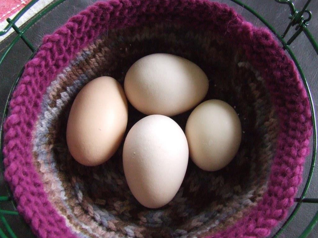 That trickiness aside, what I would like to mention is the appearance of some different-sized eggs. Big eggs. We have had three such eggs recently. The first was a large, cylindrical-shaped ‘torpedo’ egg and the other two were just jumbo-sized. They were all pale, so would have come from Sam (Orpington) or Strider (Plymouth Rock). It makes me think, “Ouch!”