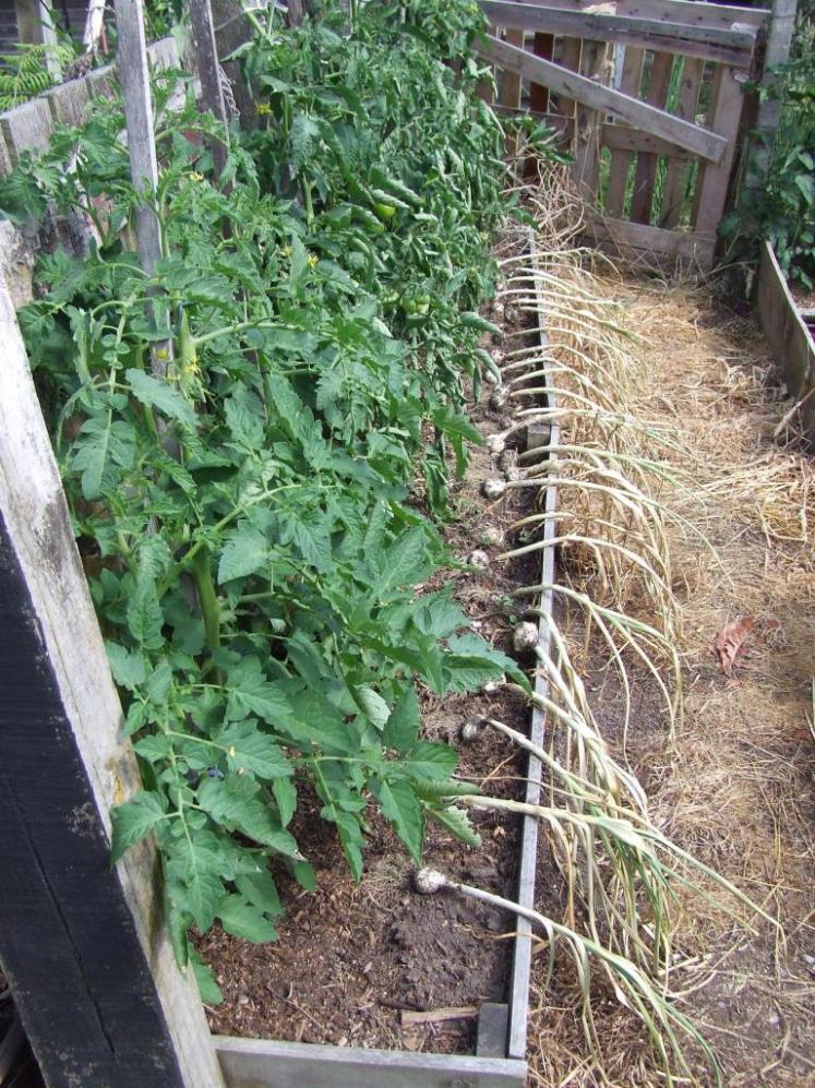 While harvesting is a little delayed, the crops are slowly getting there. Over Christmas I had to get The Husband to harvest the garlic before they rotted since I had too many things to do. They are a decent size considering I didn’t get time to get my liquid feeding act together. Maybe next season! I got The Husband to lay them out to dry in the order in which I planted them so we could see the effects of clove planting size. The garlic bulbs were generally bigger at the bigger clove end, though not the very end bulb, but there were a few big bulbs right in the middle too. Interesting. I need to pick out the biggest ones to save for planting next season.