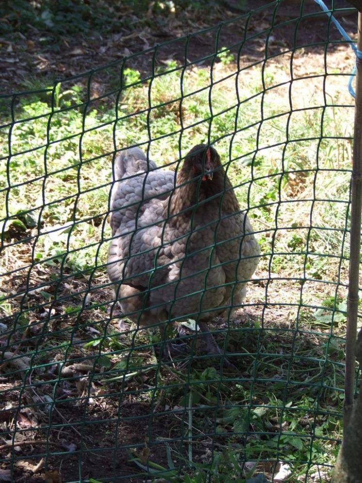 Today they have been alternating between hiding away in their house and doing little bursts of exploring. Sam came out of the broody breaker and Frodo went in. It’s like the changing of the guards. I don’t know if Frodo met the newbies when they ventured out yesterday evening, because we were at A&E and Frodo was being broody in the house when we came home. Sam, however, has met the wee feather children today, through the fence. I am pleased to report that I witnessed no aggression from her. She actually made pleasant-sounding noises towards them as she scratched around in the leaf litter beside their pen. Then they started scratching in the leaf litter in their pen. It was very cute. Maybe Sam’s still feeling a tad maternal or maybe she just enjoyed having close company. Let’s hope things stay so friendly.