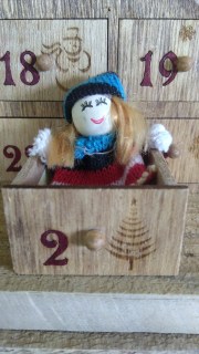 (Mary pulls the angel around in a drawer.) “A trailer on my one horse open sleigh… One horse open sleigh, one horse open sleigh. Oh, it’s Christmas. Oh, it’s Christmas.”