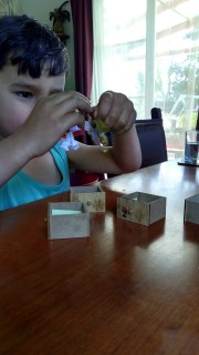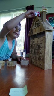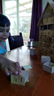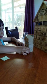 (The Little Fulla is told it’s time to put the advent characters away and Joseph hoons off to the other end of the table in his drawer tower car.)