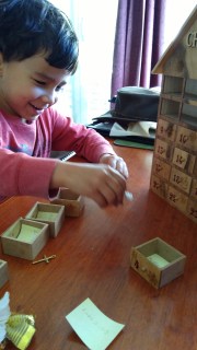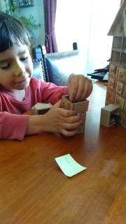 “He got hurt and he nearly died but he’s ok now.” “Those two boxes fell over.” (The donkey had a falling tower accident.)