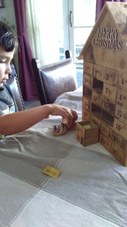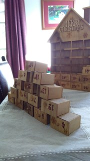“Ooh, I can make a Christmas tree with the boxes.” “A Christmas tree!”