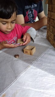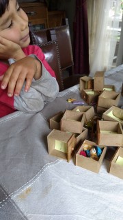 “Mummy, do you know which one had this?” “He must have had them. He must have had them in his box because he’s the lightest.” (The green wise man.)