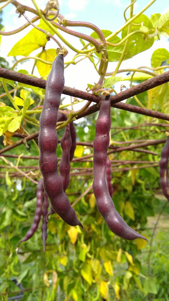 Yard Long Red Noodle beans. These ones are being left to ripen to save seeds from.