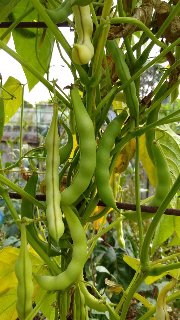 The bush beans have nearly all finished and the climbing Blue Shackamaxon is done. The Henry’s Climbing Butter is drying off now while the Yard Long Red Noodle is only just becoming useful. It was the most insect-attacked variety, even with transplanting the seedlings from cell trays. The other climber, Selugia has been slower to produce and ripen its beans but there are heaps of them and we are harvesting the dried pods now. I sowed some more of the faster varieties (bush beans and Blue Shackamaxon) into cell trays to try and get another round of beans before it gets too cold. Some are ready to transplant now. I have also sowed some broccoli, cauliflower and cabbages. I think my nose and stomach can handle them again now. And kale and lettuces for some good greens.