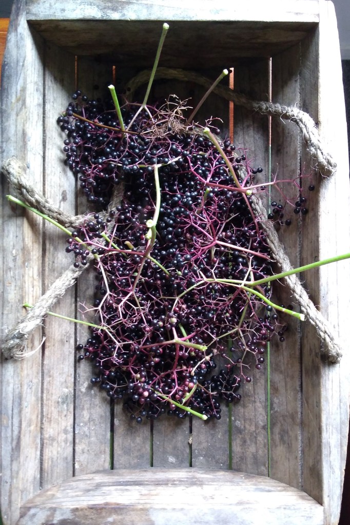 Gathering elderberries.