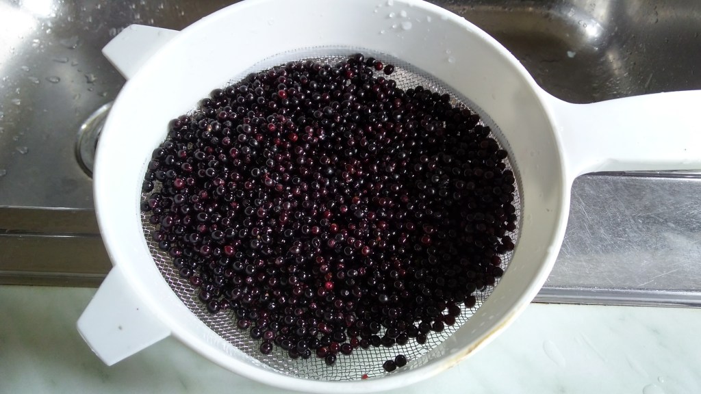 Washing elderberries.