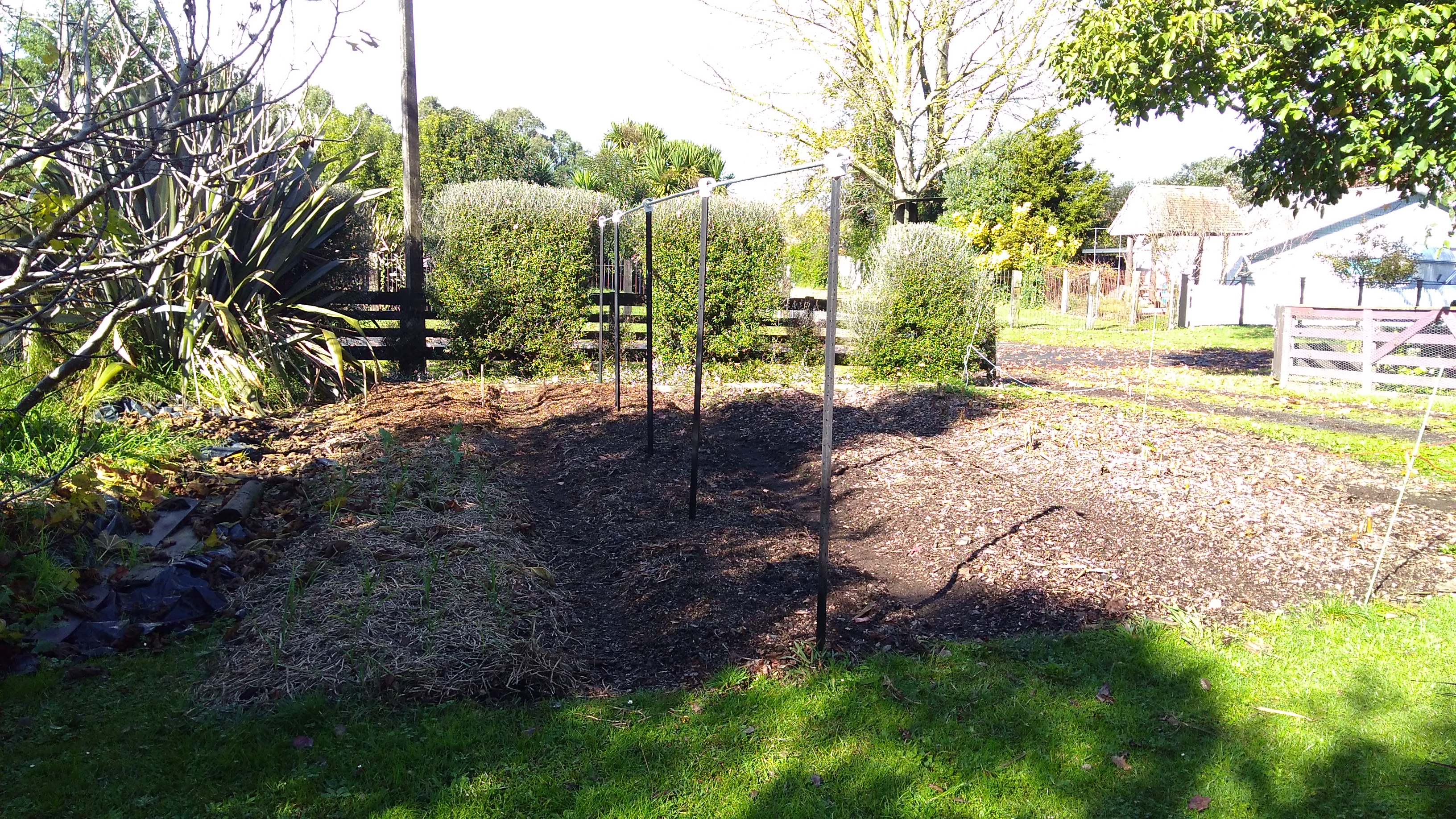 The old wood shavings were raked back to allow a layer of compost to be put onto each planting spot, then raked back on top of the compost. I planted the garlic cloves 25cm apart as I did for the early garlic. I did 20 cloves for each variety, except for the last one, which had beautifully large cloves, but only 10 that could be planted. And now, we wait. I was so stoked to get all the garlic planted and the rows in the Front Plot tidied up too. It is nice to have crops growing in the ground even when I feel like a mess. The early garlic is growing well and we transplanted self-sown kale seedlings into the row between the early and later garlic. I had purposefully left one seeding kale plant in there after summer and it rewarded us with kale seedlings that meant I didn’t have to sow any for the cold season.