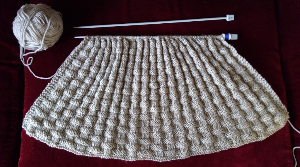 In the evenings, and times when I’m more incapacitated, I continue to knit the baby wrap, which is basically a small, soft blanket, slowly but surely. It feels like it’s taking a long time because I have been spoilt with easy knitting achievement lately, having knitted a bunch of baby hats. I hope I can get it finished in time. I like how it’s turning out. It has a basketweave pattern and I settled on a knitting needle size that makes it more loose and drapey. With the merino wool, this makes it feel soft and light.