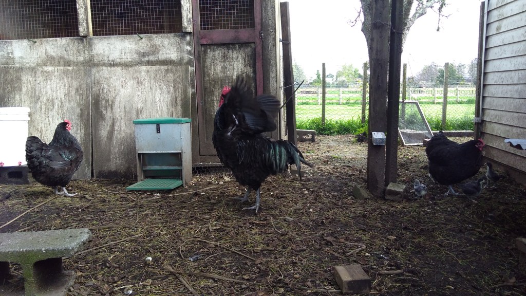 Then the three blue girls, recently returned from the blue pen, started ganging up on Helen Cluck. I didn’t realise they’d formed a gang. Something’s gone to their heads. Oh, maybe it’s a lack of male leadership… Jack of Spades, who is one of the most ineffective managerial roosters we’ve had, stood there all like, “Hey guys… guys… maybe you could stop fighting please?” I had to step in and break up the fight myself.