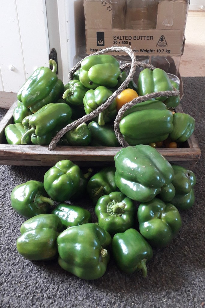 We continue to harvest feijoas, sweet peppers, the very last of the tomatoes (cherries Golden Grape and Broad Ripple Yellow Currant), some dry beans and apples from our mature apple tree. When I saw we had an overnight low of 4degC (39F) forecast I picked all the remaining sweet peppers that were big enough. They were looking good after some rain but I didn’t want them to go to mush if it got too close to freezing. We had one night that got down to about 2degC but the remaining peppers made it through. Ah well, the small ones I left on have carried on growing.