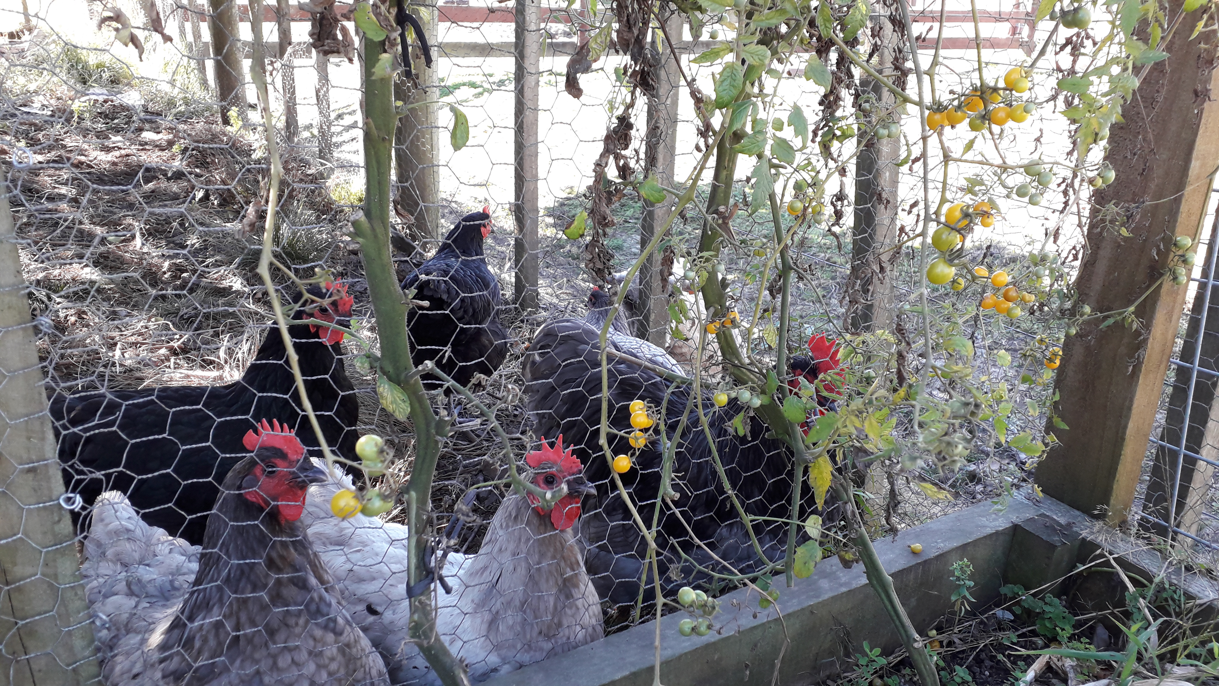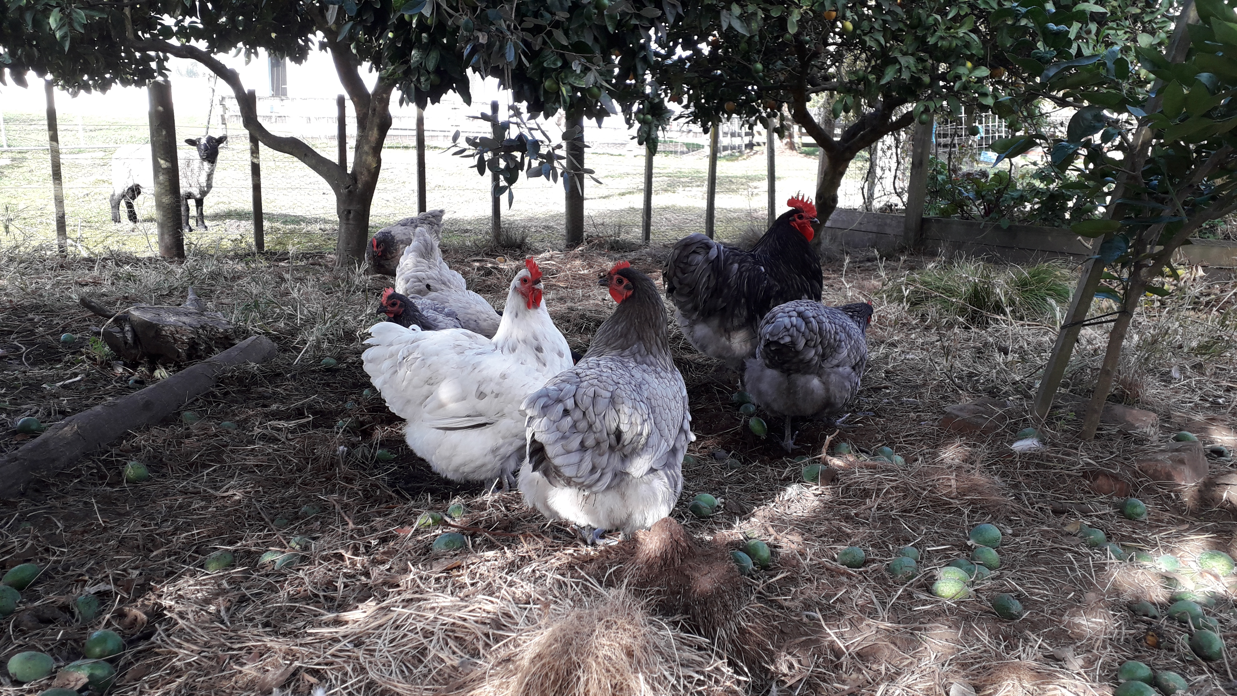 Even with only half the tree producing I’ve still had trouble keeping up with harvesting the feijoas. The chickens were enjoying pecking at them before they moved pens. I have started calling the rooster Basil because he is the son of Sage and the herb theme reminds me of that. I might give the young blue girls herb names and the black girls something else to remind me that they are from different fathers.