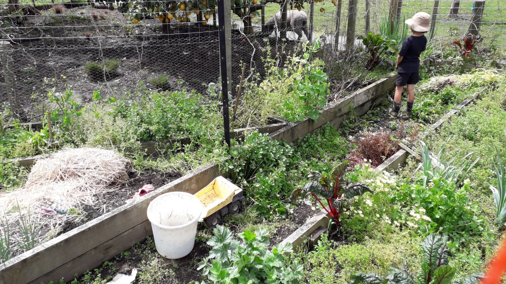 We continue to deal with the many weeds, which are thriving after so much rain. This past winter was New Zealand’s warmest and wettest winter on record. And we have the weeds to prove it! School Holidays are just finishing and The Little Fulla and Miss Scarlet have been helping me with weeding in the afternoons when we can. It isn’t as easy having Miss Scarlet in the garden when her brother isn’t here to help keep an eye on her and we’ll miss his garden company and funny antics.