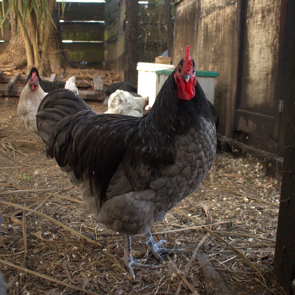 Breeding of my Australorp chickens turned an unexpected corner this year. I hatched a grand load of chickens last year, using three roosters and multiple hens, and had some lovely young ones developing when I discovered a colour issue. Multiple young chickens had faint white barring on one or more feathers. Chickens from different parents. To the untrained eye it may not be noticeable or of concern but it it signaled a colour flaw in my genetics that is probably not fixable. I decided to abandon breeding them. It has actually turned out to be a relief as I needed to stop breeding them in order to focus on other things and prepare for moving without the added pressure of more animals to look after and juggle and all the butchering of extra chickens. Instead I have been downsizing the flock and trying to figure out a good number for our egg supply going forward. We currently have 11 chickens: 10 hens and our rooster, Trevor. Trevor is the son of Basil and is the most easy-going, quiet rooster we’ve had. He doesn’t wake me at unearthly hours of the night, he’s friendly and he does a good job of looking out for danger for his hens. I have questions about his fertility because he’s so laid back but I like having him around.