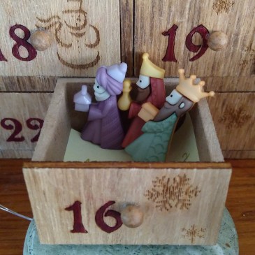 Scripture: Matthew 2:11 “Mummy, do you know which one had this?” “He must have had them. He must have had them in his box because he’s the lightest.” (The green wise man.) “Mary doesn’t go on the donkey because she’s had her baby.” “C’mon, fit in my box!” (Says the green wise man to the … More Advent Adventure Through a Small Boy’s Eyes: Day 19 – I’ve Struck Gold!